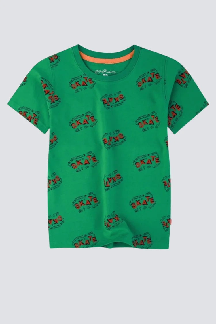 The Boys Green Skate Print T-Shirt is designed for energetic kids who love sporty street fashion. Featuring a vibrant green base with playful skate-inspired prints, this t-shirt offers comfort and style for everyday adventures.